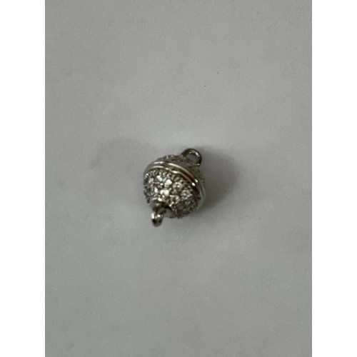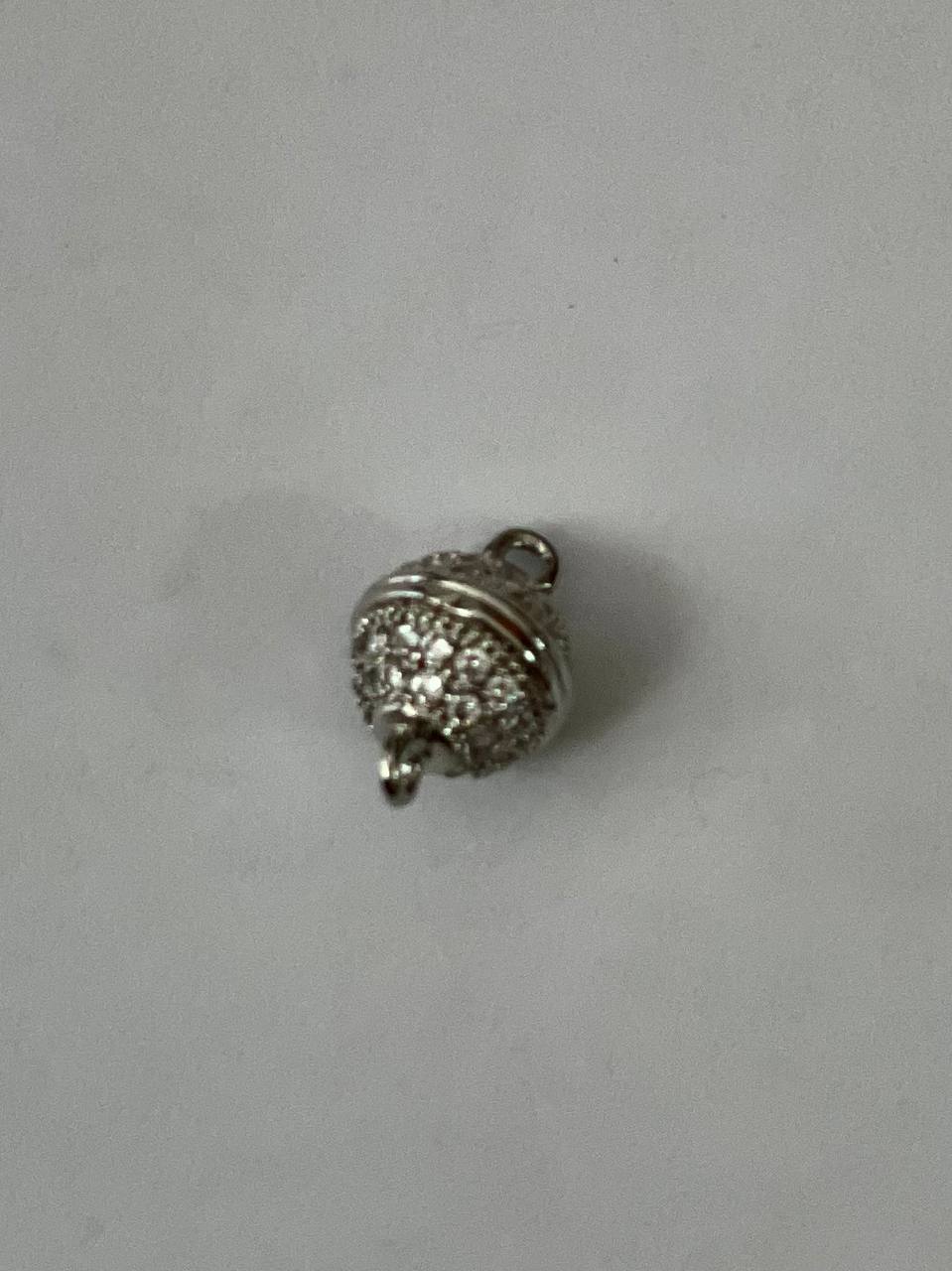Застібка магнітна, Латунь з фіанітами, Кругла Платина 13,5х8,5мм